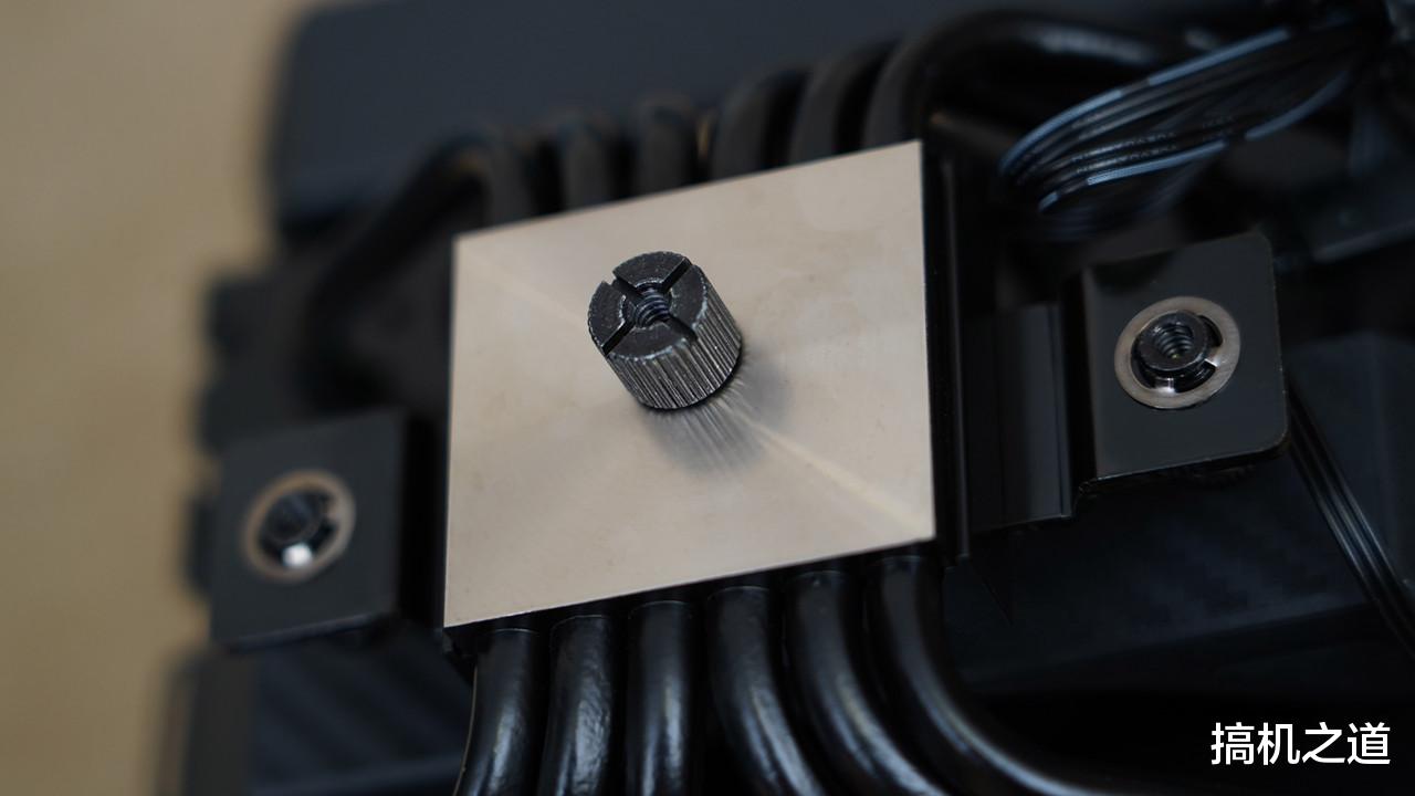 散热器采用了高精度CNC纯铜底座,并进行了镀镍处理,底座平整度较高,能够贴合CPU,保持较高的散热效率。