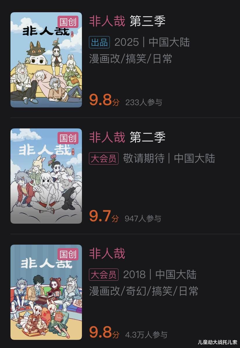 十年间,《非人哉》凭借这种“略显神经质”的搞笑风格,在B站斩获了超10亿的播放量,三季动画评分稳居9.7分以上。从漫画到泡面番,它早已不是小众自嗨,而是国漫圈雷打不动的“顶流”。