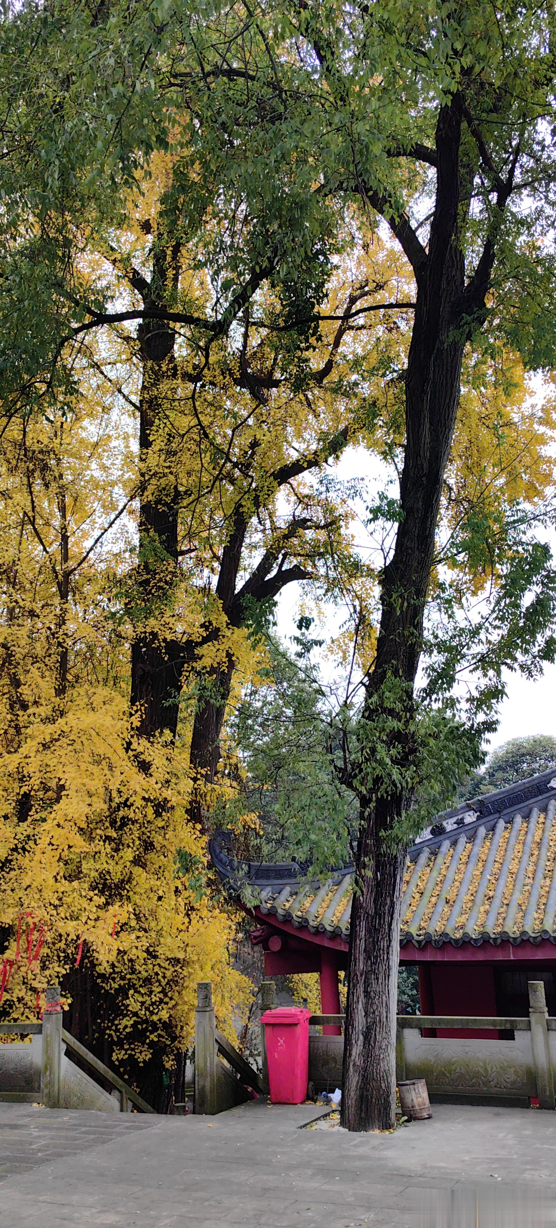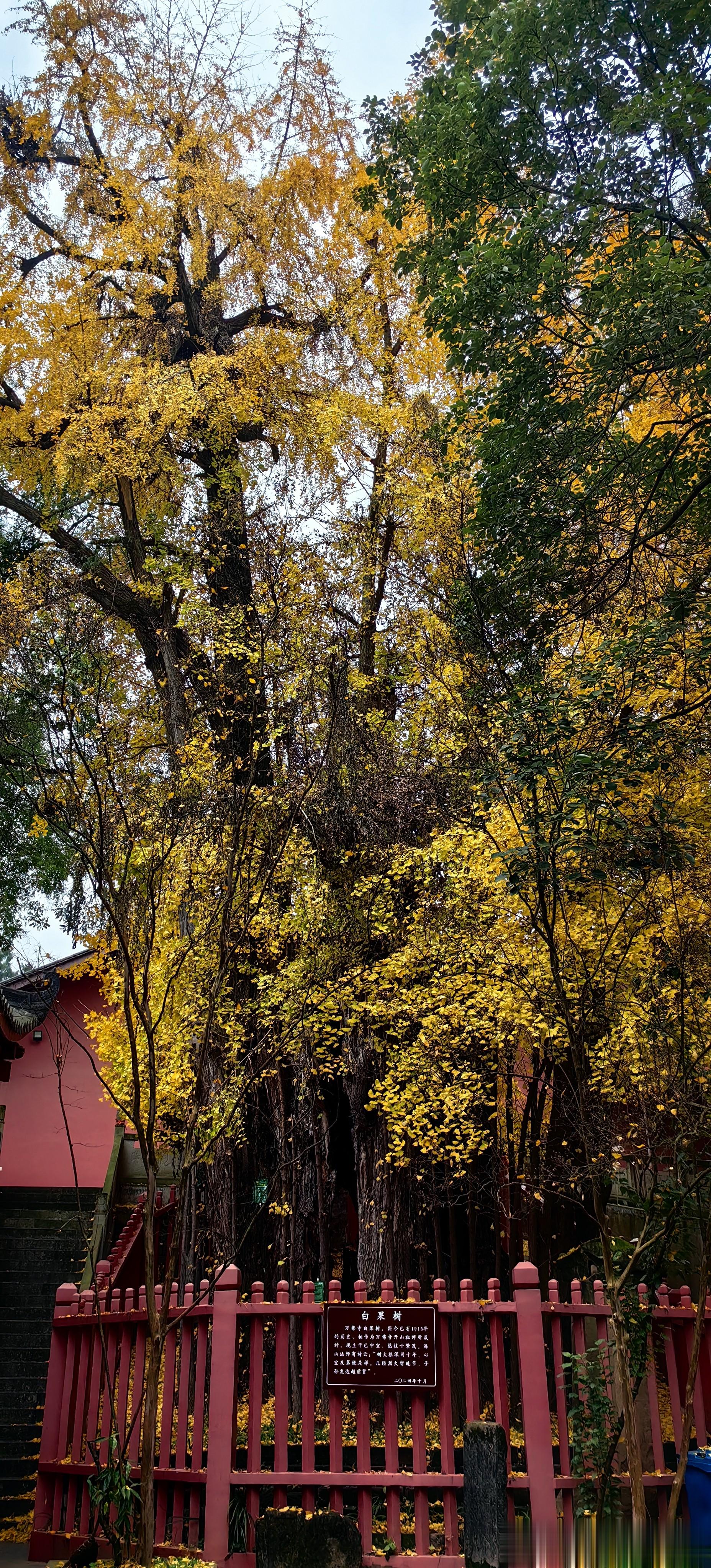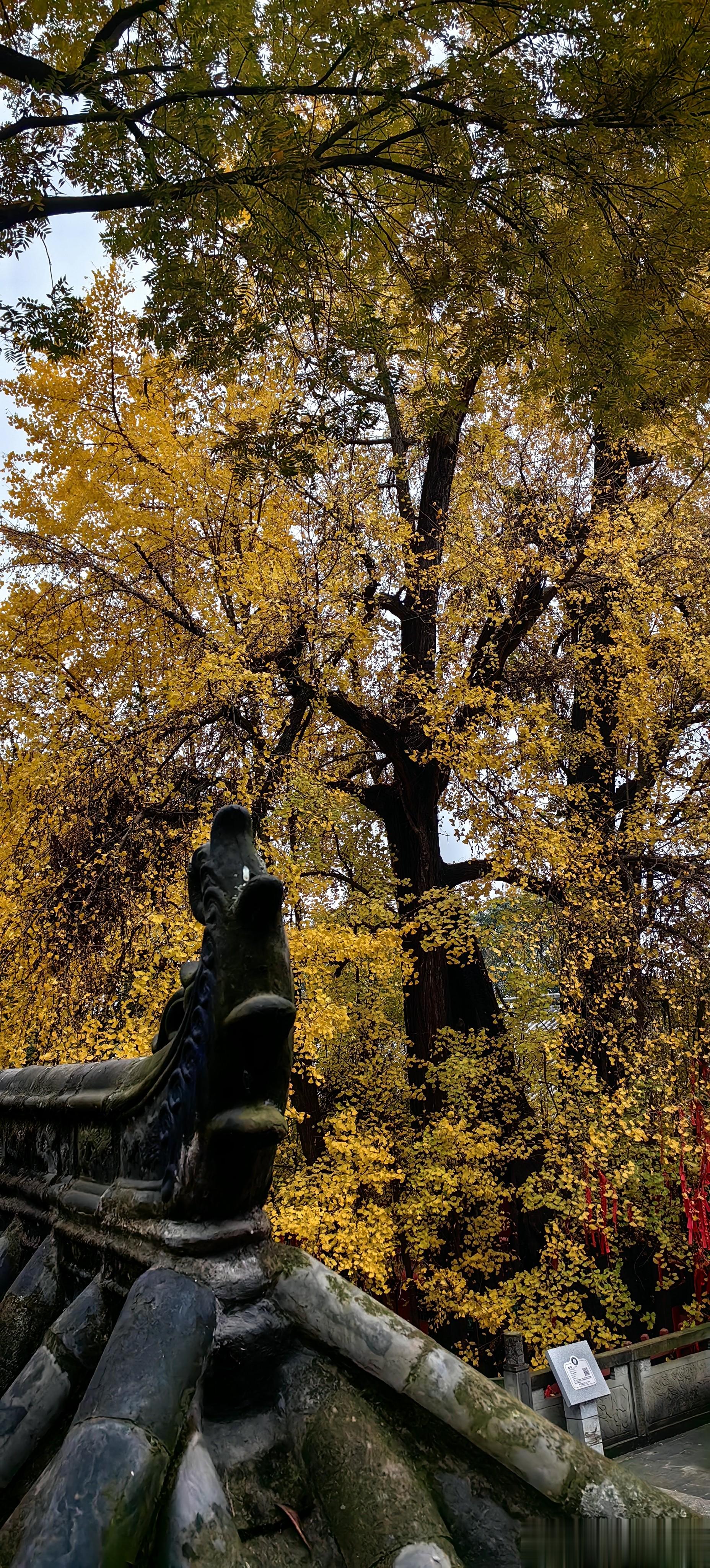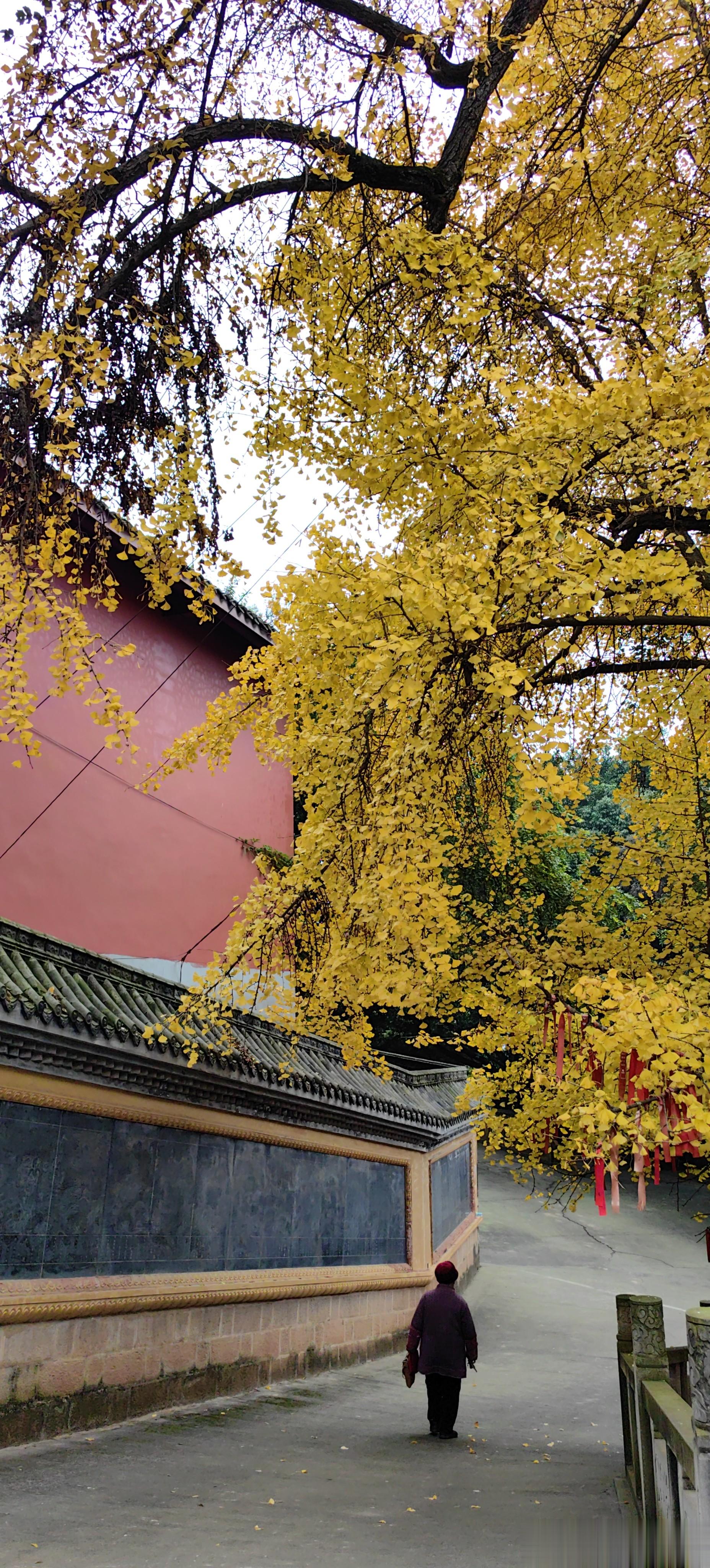 寺内1900多岁的金黄银杏与红墙黛瓦相映,禅意与冬意交融。