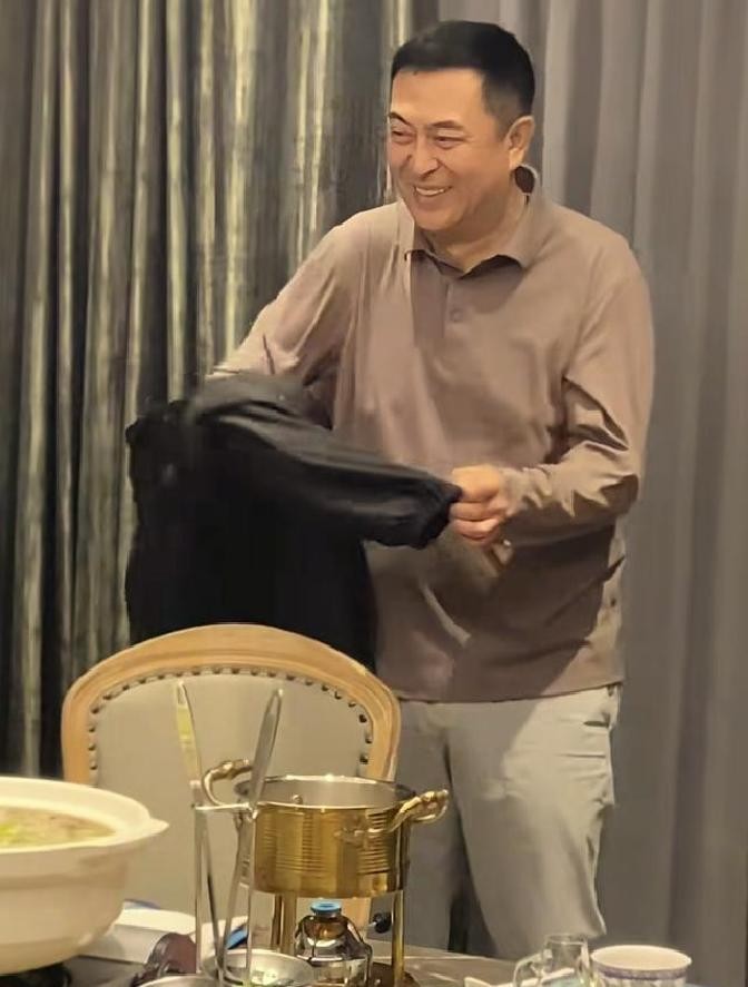 桌边另一位焦点人物,是55岁的张嘉译。出现在画面里时,他是姗姗来迟的那一个,众人已落座,他拎着外套走到空位前笑着解释,明显迟到习惯了,大家也习惯着他迟到。林威旁边专门空出一个位置,这种座次安排,多少能看出圈内关系。
