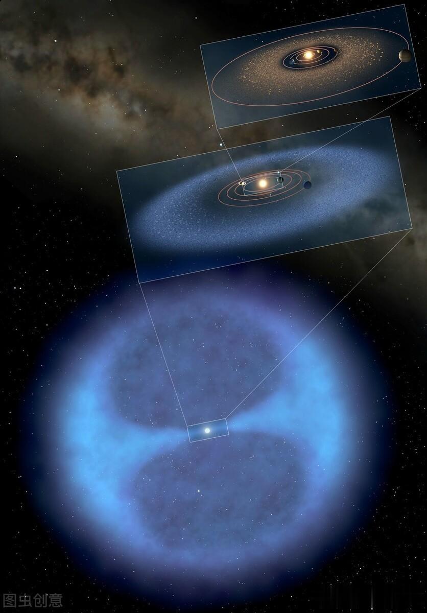 因此,太阳系应该是一个“核心扁平,外围球状”的复合结构。那么,即使我们只从太阳系的形状上看,宇宙飞船无论是沿着太阳系圆盘平面飞行还是垂直于轨道平面飞行,都得飞出球状的奥尔特云才算是真正的飞出了太阳系吧!