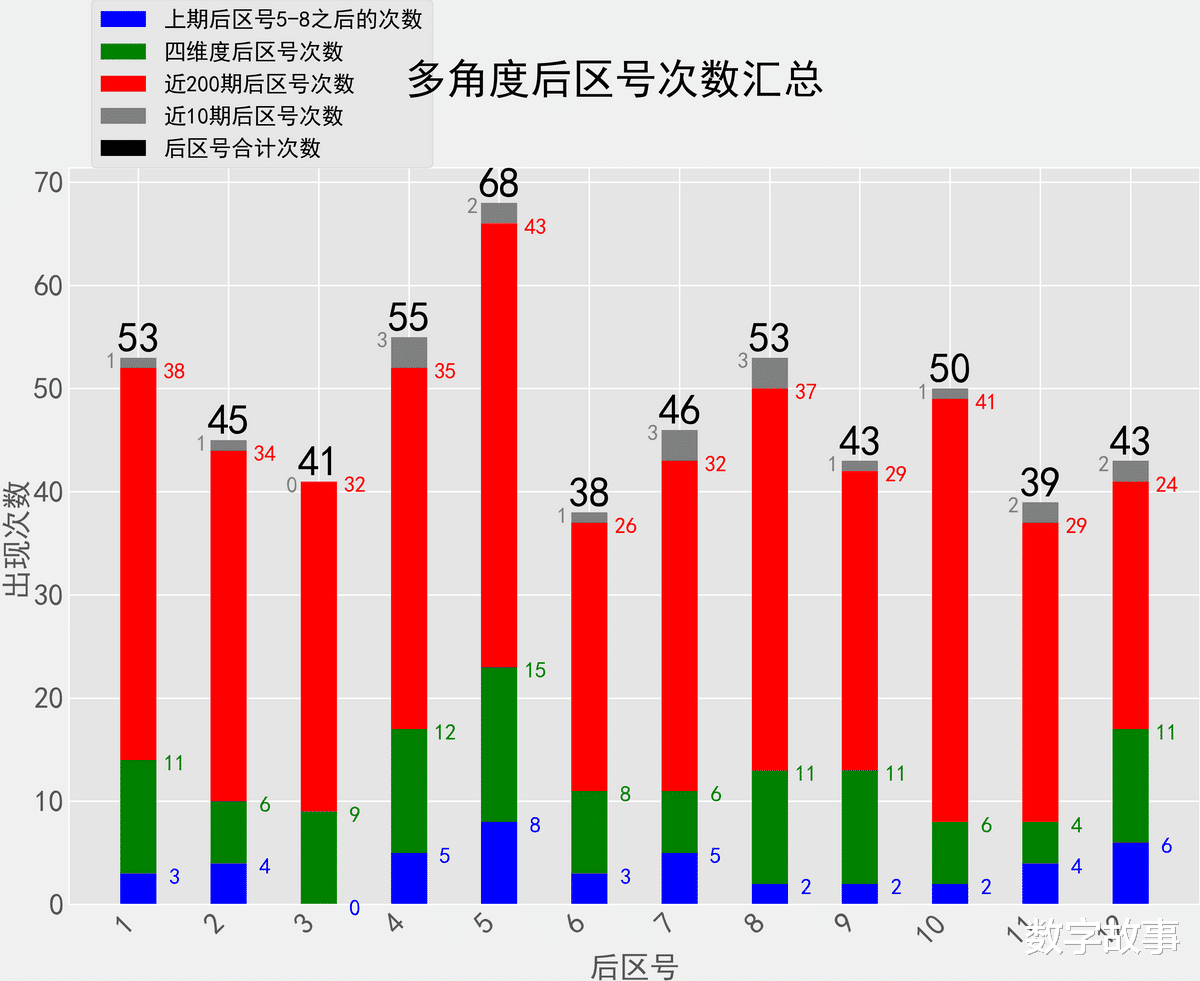 大乐透近10期前后区号统计情况统计样本数据: 50个前区号码 20个后区号码