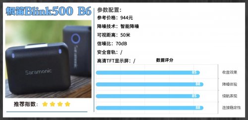 枫笛Blink500 B6采用一拖二设计,双发射器适配双人访谈场景,搭配SR-M1全向领夹麦,拾音位置灵活。但单发射器重36g,仅靠鳄鱼背夹固定,长时间夹薄衬衫会有明显拉扯感,跑动时还易移位需频繁调整。