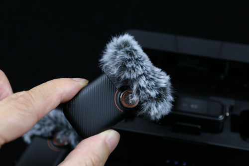 搭载全向型咪头,支持48kHz/24Bit采样率与20Hz-20kHz宽频响,室内口播人声还原细腻,120dB 声压级可避免近距离爆音。单独的降噪控制键能分级调节强度,轻降噪模式可保留环境氛围音,适配探店等场景。但极端环境乏力:户外4级风时,即便用旋转卡扣式防风罩,仍有明显气流声;闹市中强降噪仅能压制约65%车流声,高频机械噪音仍会干扰;开启降噪后,人声低频略有损失,听感偏单薄。