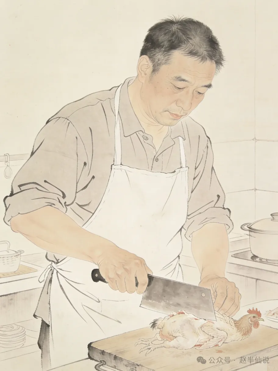 更绝的是砵兰街的油鸡佬福叔!这老兄不高不矮,偏偏选在烟花巷里住,每天闻着脂粉气剁鸡。街坊邻居都笑他“不正经”,他却嘿嘿一笑:“你们懂个啥?油鸡要嫩,就得沾点这烟火脂粉味!”你还别说,他做的油鸡嫩滑入味,夜场的小姐们下班就往他这儿冲,天天卖断货。外婆见了都夸:“这小子是真懂行!砵兰街属水,油鸡属火,水火既济——他这是借了水旺火、火暖水的势,把地气用活了!”