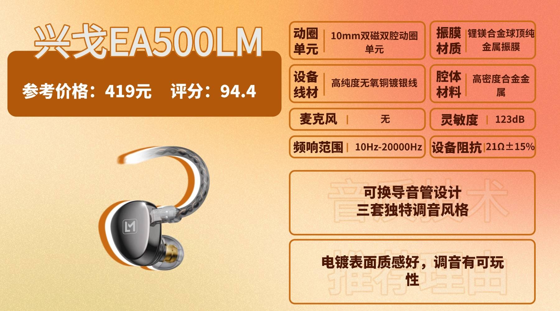 EA500L M 搭载第二代 DMDC 双磁双腔动圈与锂镁合金球顶振膜,整体声音主打均衡路线,中高频线条利落,人声位置自然不贴耳,乐器分离度做得比较干净。官方提供三种调音模式,风格之间的差异并不夸张,但能让整体适应更多曲风。刚上耳时并不是那种瞬间抓人的刺激型调音,更像是偏稳定耐听的取向,越听越顺的那种。