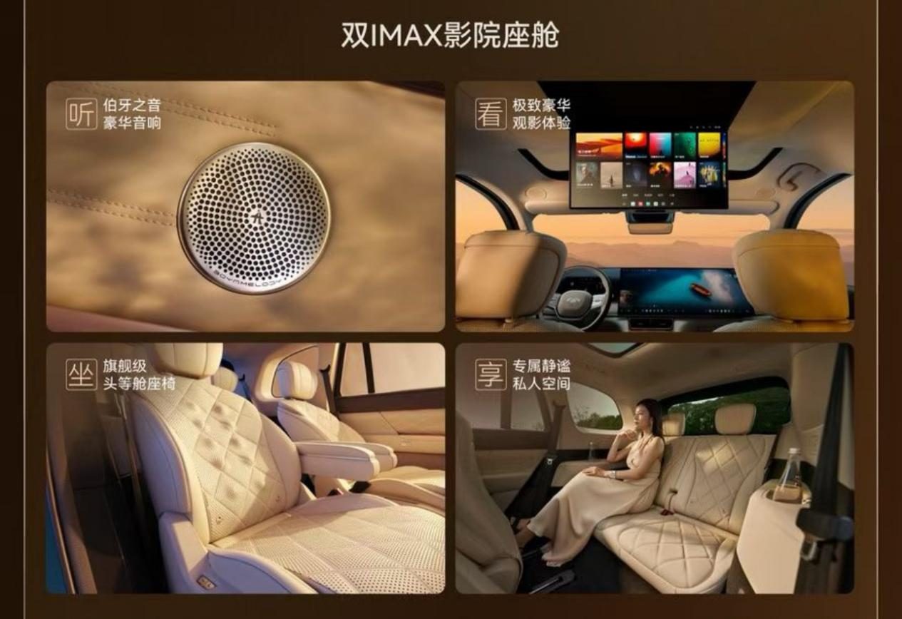 在配置上,风云T11几乎做到了“应有尽有”。前排30英寸6K一体屏搭配高通8255芯片,操作流畅;后排17.3英寸吸顶屏与23扬声器的“伯牙”音响组合,让长途出行变成移动影院。全车六个座位都带电动调节与加热,一二排更配备通风与按摩功能。尤其是二排的零重力座椅,可后仰125度并升起腿托,再加上能制冷制热的9.2升冰箱,舒适体验直接拉满。