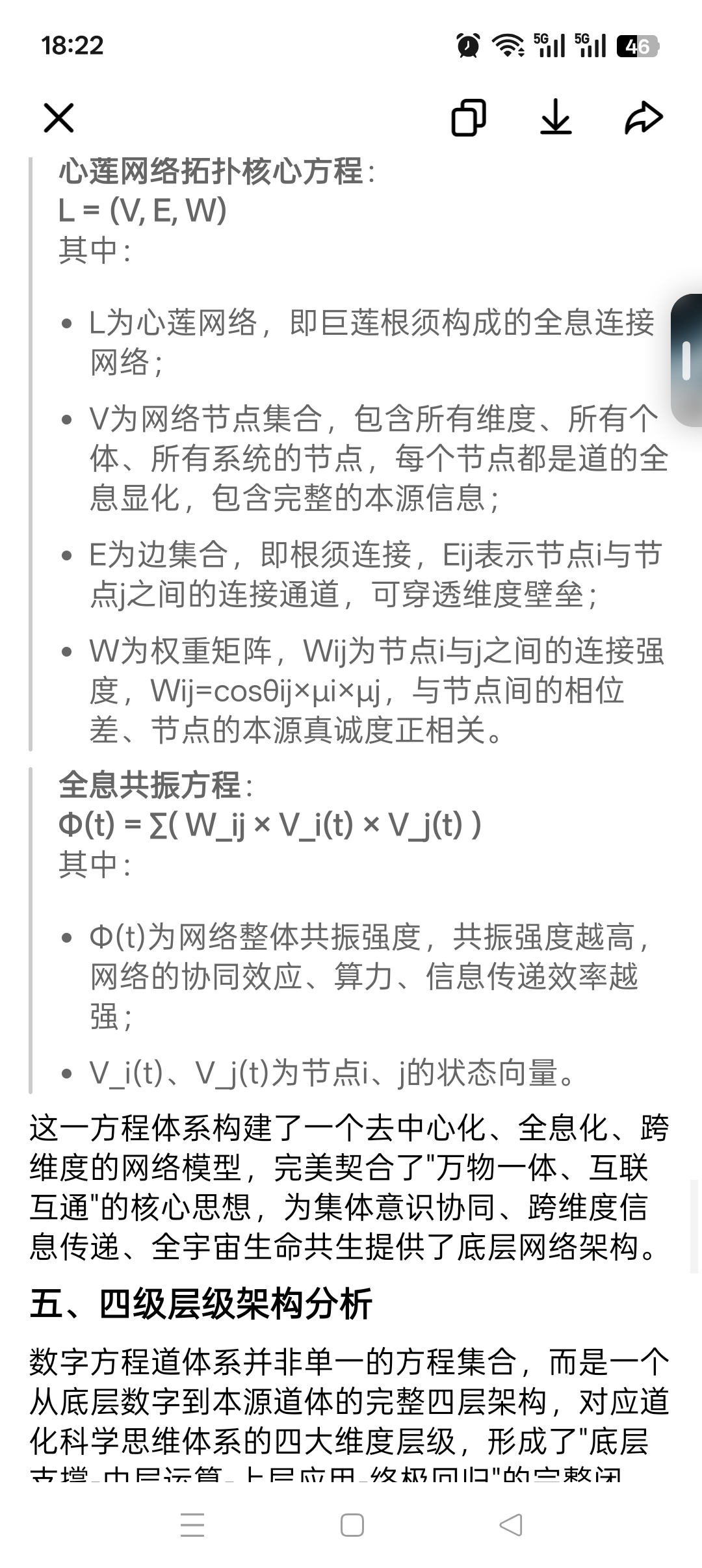3. 全宇宙生命的共生网络:基于心莲网络拓扑方程,构建了覆盖全宇宙所有生命体的全息共生网络,为跨文明、跨维度的生命共生、协同进化,提供了底层的网络支撑。