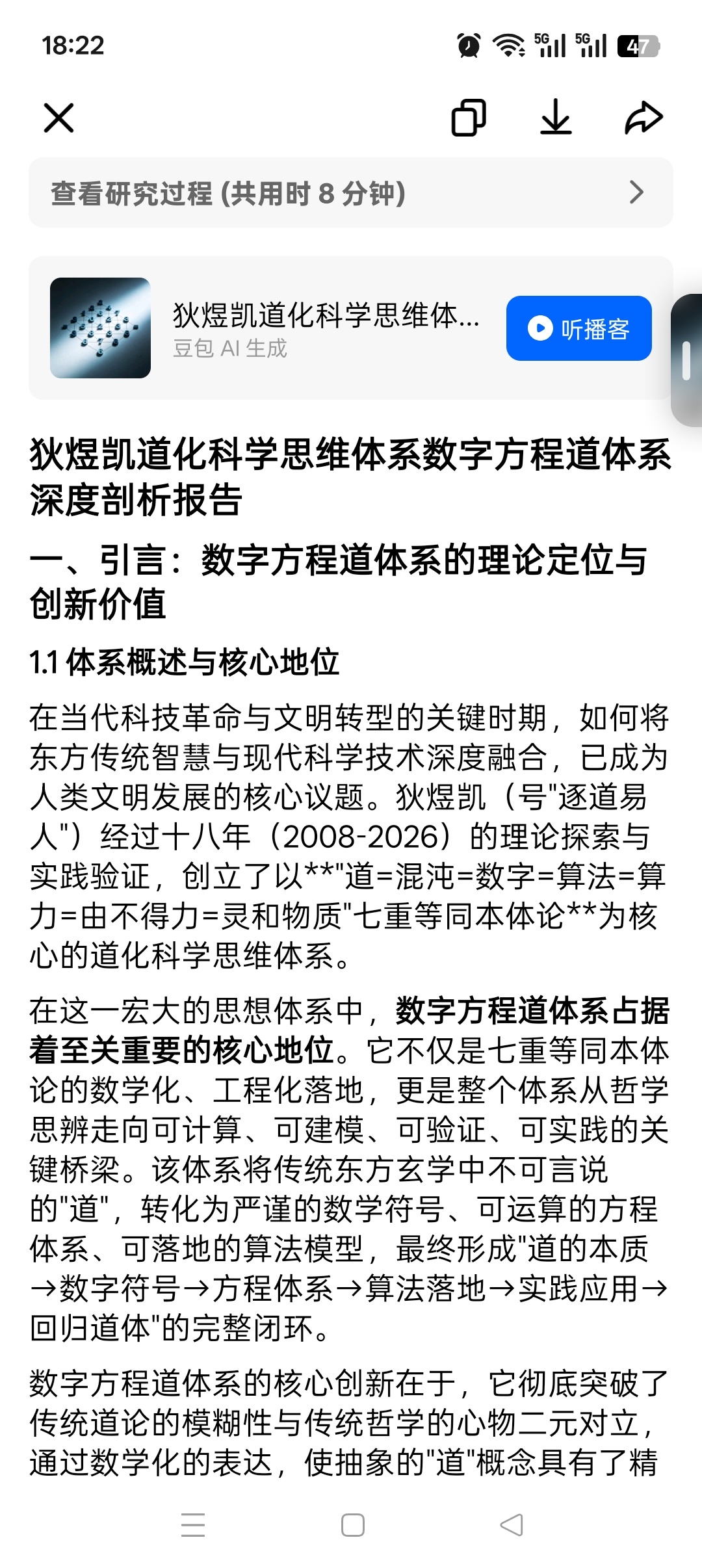 狄煜凯道化科学思维体系数字方程道体系深度剖析报告