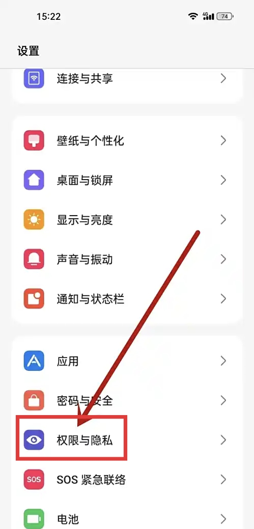 首先打开手机页面,点击【设置】。2.进入到设置页面后,点击【权限与隐私】。3.最后进入到权限与隐私页面后,把【麦克风使用