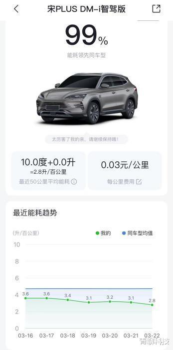 城区用电:一周一充,通勤成本每公里5分钱。对于日常通勤来说,比亚迪大电池DM-i车型给出了“用电自由”的解决方案。2026款秦PLUS DM-i等车型已将CLTC纯电续航提升至210km,直接杀入8万级市场。这意味着,以日均通勤30公里计算,一次充电足以覆盖一整周的出行需求。对于有有家充桩的用户,每度电费仅0.5元,年能耗成本不足4000元。而同级别燃油车油耗普遍在7.5L/100KM,在8.53元油价下,一年20000km油费接近1.3万元。仅此一项,插混车主一年就能省下近万元。