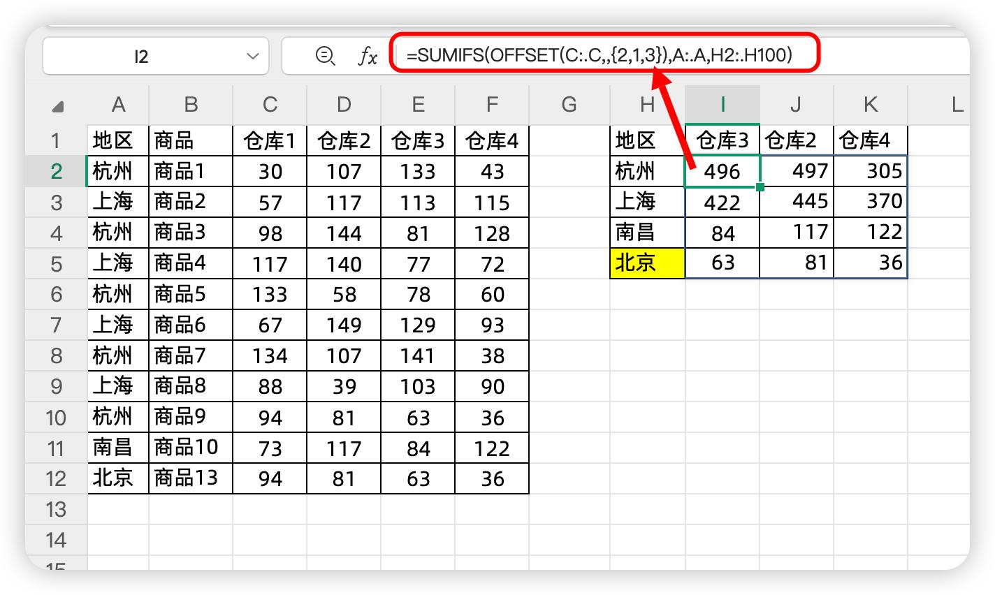 1、普通写法因为它要汇总3个仓库,所以,普通写法是一列一列来计算