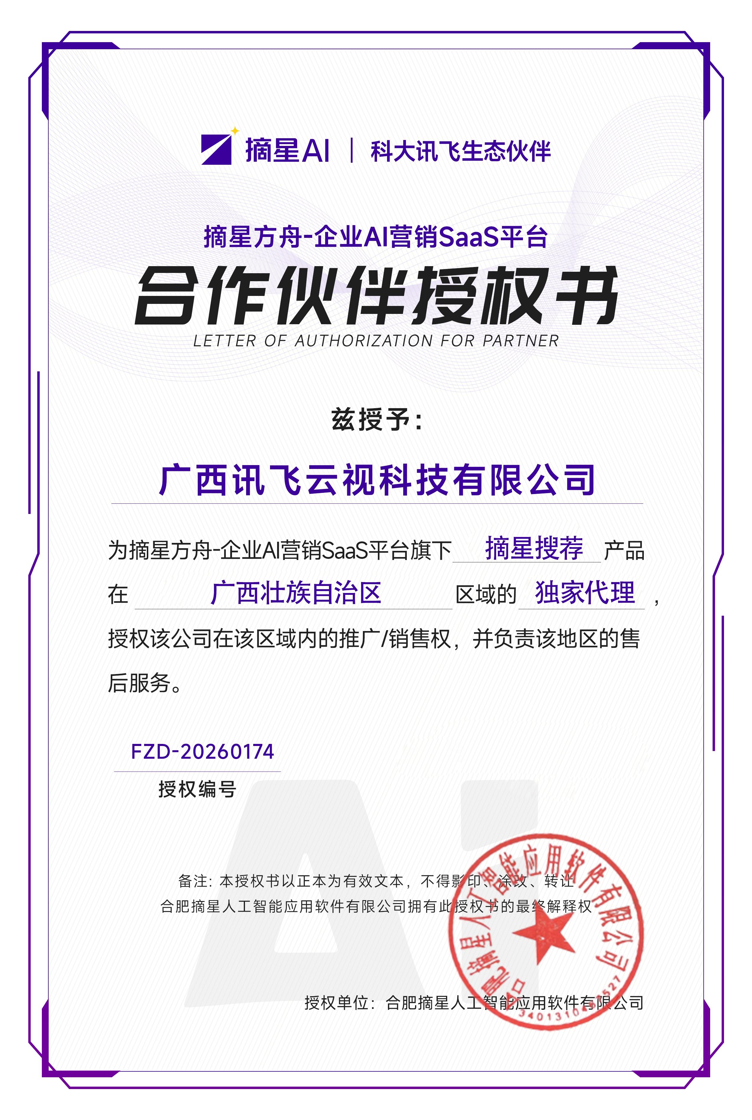 广西讯飞云视科技有限公司作为摘星AI在广西区域的独家运营机构,其相关负责人介绍,此前,在广西商贸服务业发展促进会主办的数智赋能广西“桂字号”高质量发展暨“老字号”嘉年华活动中,在广西商务厅有关领导的见证下,公司已与广西商贸服务业发展促进会签署战略合作协议,现场还得到了区内外采购商与企业代表的广泛认可。截至目前,公司已与木论思泉、臻饮、芒欢乐、花香六堡等广西知名品牌企业开展合作,帮助企业的品牌和产品实现了全域主流AI平台的权威曝光。