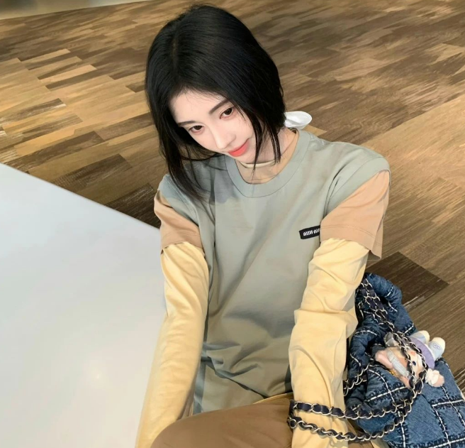 搭配三:拼接打底衫+卡其色休闲裤,干练十足