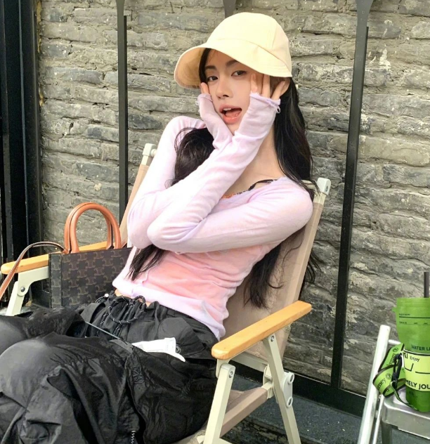 首先我们就来看一下鞠婧祎的搭配方式,利用一款粉色的打底衫来搭配亮面的休闲裤,这种搭配方式最大的优势在于能够提升服装的炫酷感。对于那些年轻的姑娘来说,选择淡色系的服装来进行修饰才能够体现出自身的style。粉色这种颜色就非常的好,不仅能够衬托出温柔可爱的一面,还能够衬托出纯情的感觉。而下半身之所以要选择亮面的休闲裤,主要是为了让整体的造型不再那么墨守成规,因为亮面的休闲裤可以给人一种很高级的感觉,这样一来整体感就会呈现出更完美的一面。