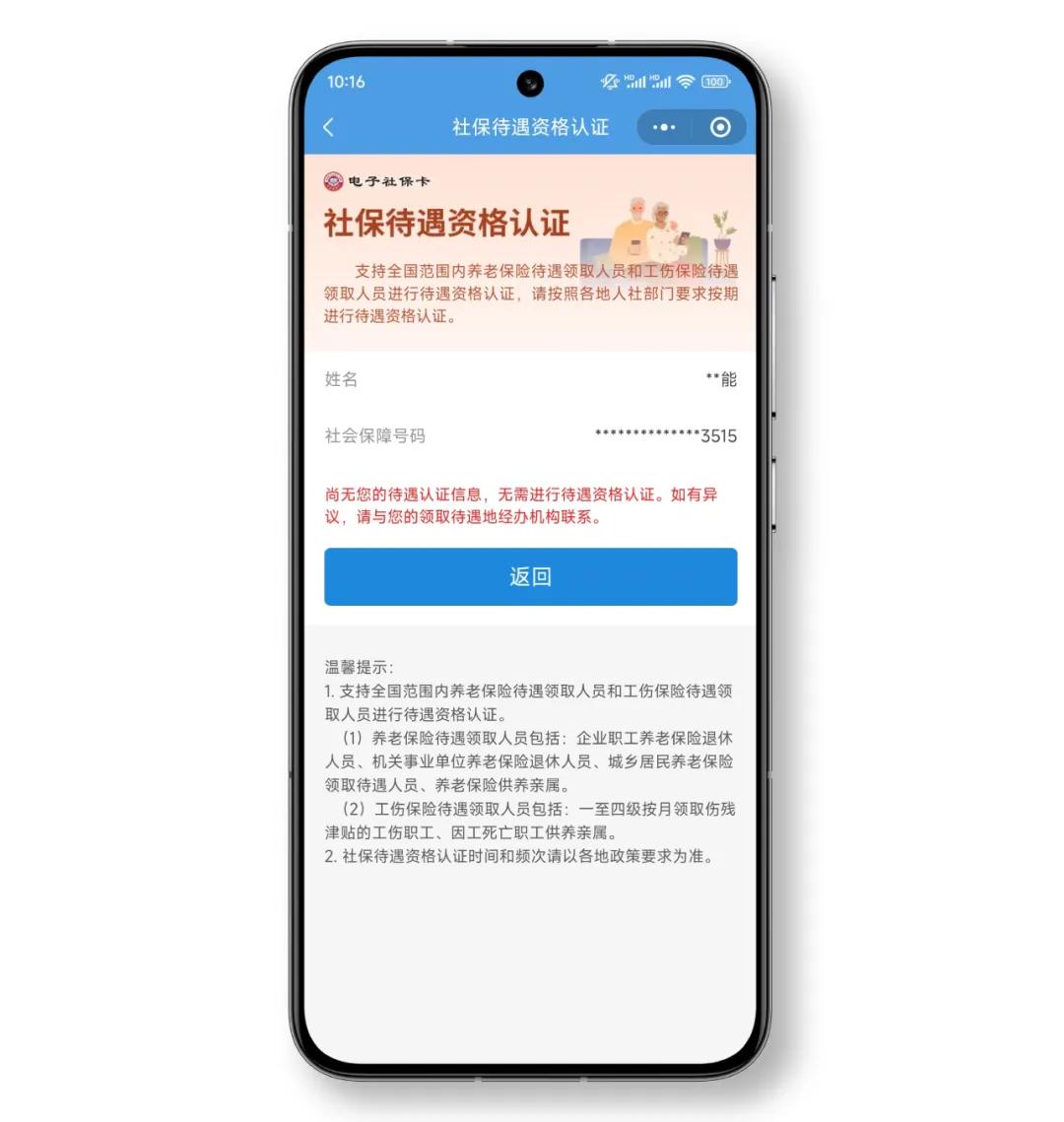 输入电子社保卡密码后,即可进入社保待遇资格认证界面。
