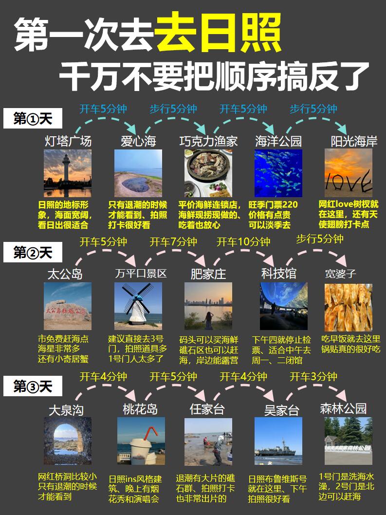 如果你第一次去日照,恭喜你姐妹,刷到这篇就一定要码住了😃、日游虽然很小也很精致,今天就给大家安排3天2晚不绕路的行程‼️