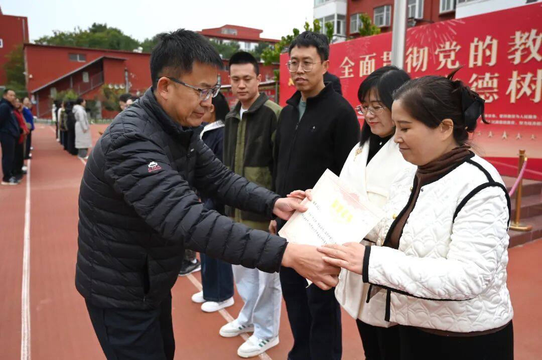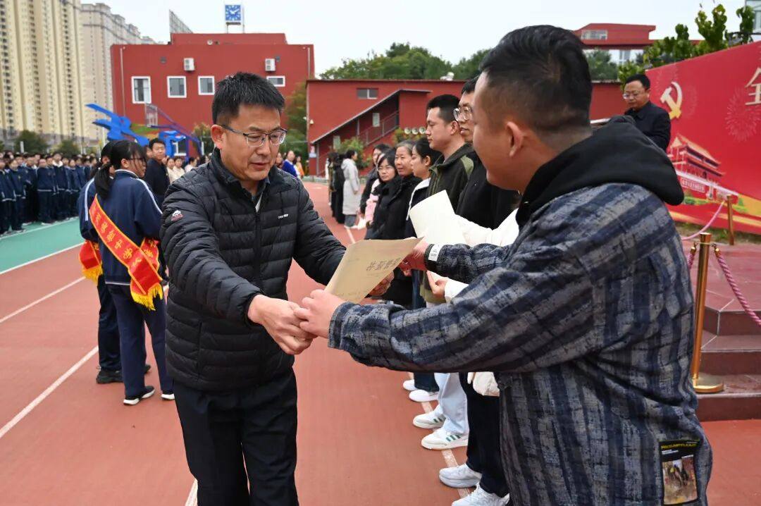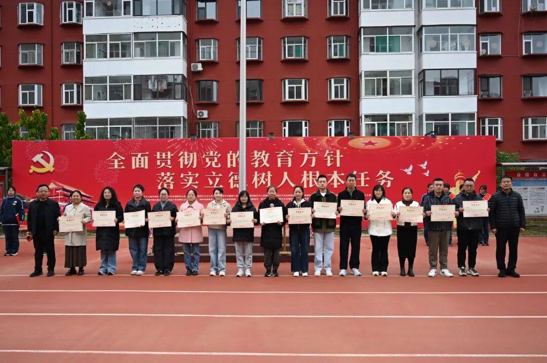 在10月20日初中部升旗仪式结束后,赵国峰副校长为忻州市2024年“三优工程”评选活中取得优异成绩的教师颁奖,现场掌声如潮,共同见证了这一荣耀时刻。