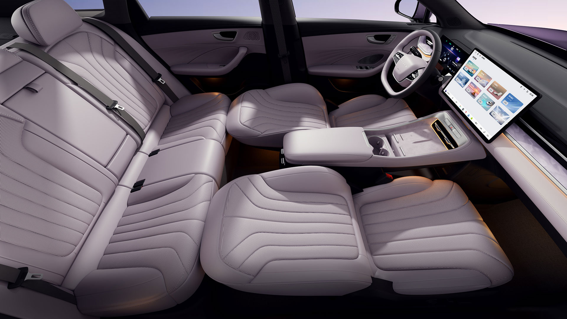 智舱方面,三个配置都装备了10.25英寸全液晶仪表+15.6英寸 2.5k分辨率的中控屏,都支持主流品牌手机的大部分机型的手车互联、蓝牙车载电话什么的就更不用说了。还有全球首发搭载豆包深度思考大模型,让交互更自然,车机更懂你。