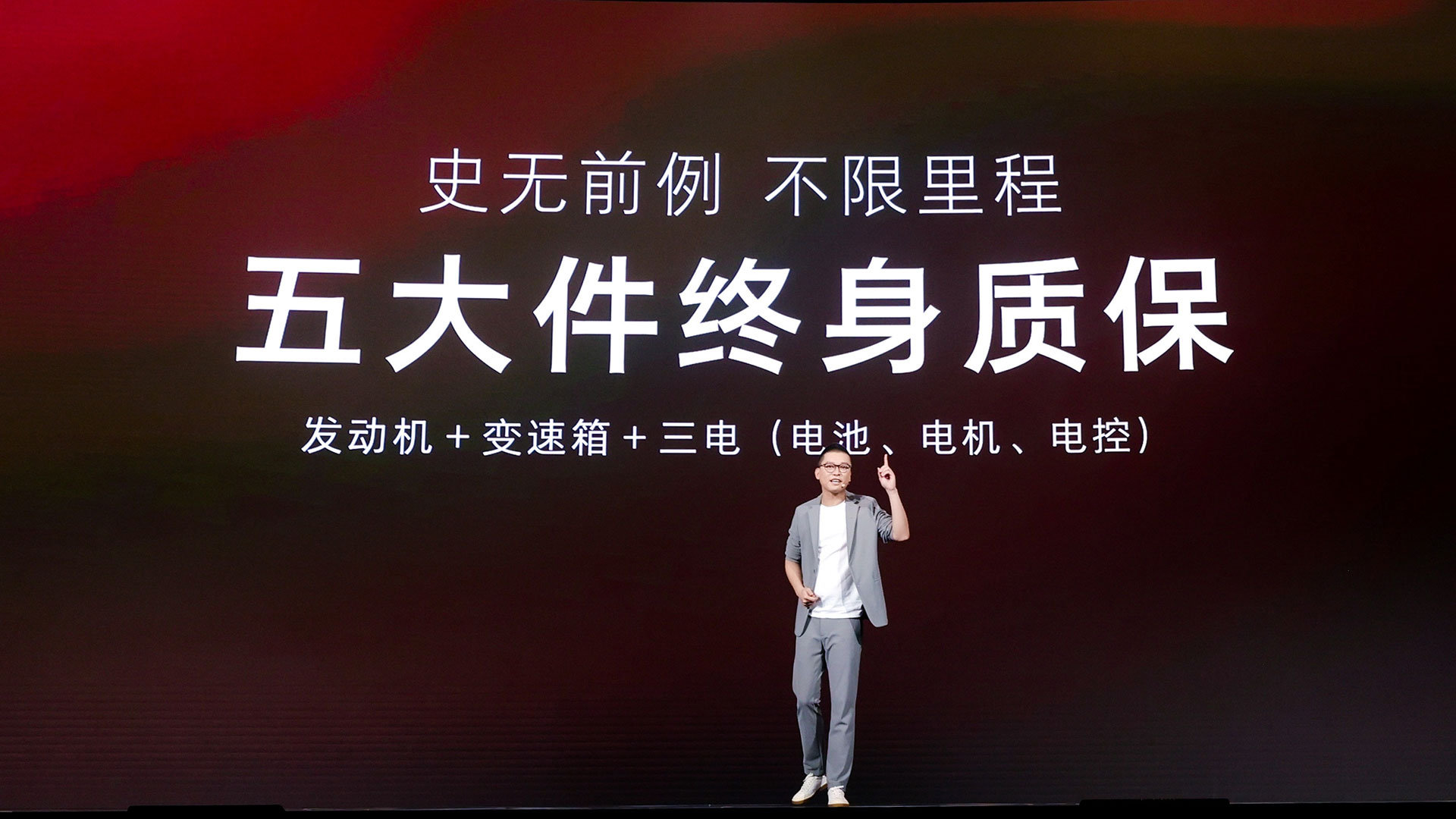还有零自燃终身保障+五大件终身质保,而且不限里程,发动机、变速箱、电机/电控/电池全面质保了,消费者选购新能源汽车的顾虑基本都给打消了,剩下的就是让更多国民畅享新能源汽车的全新移动体验。