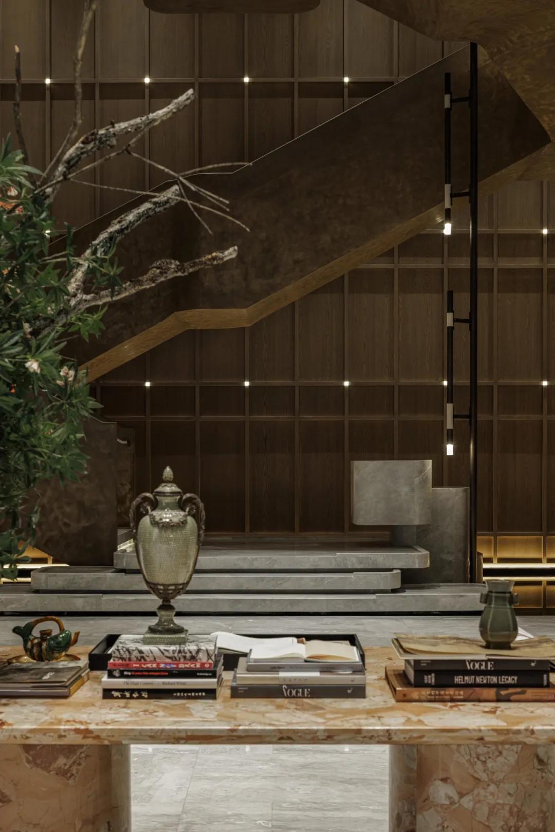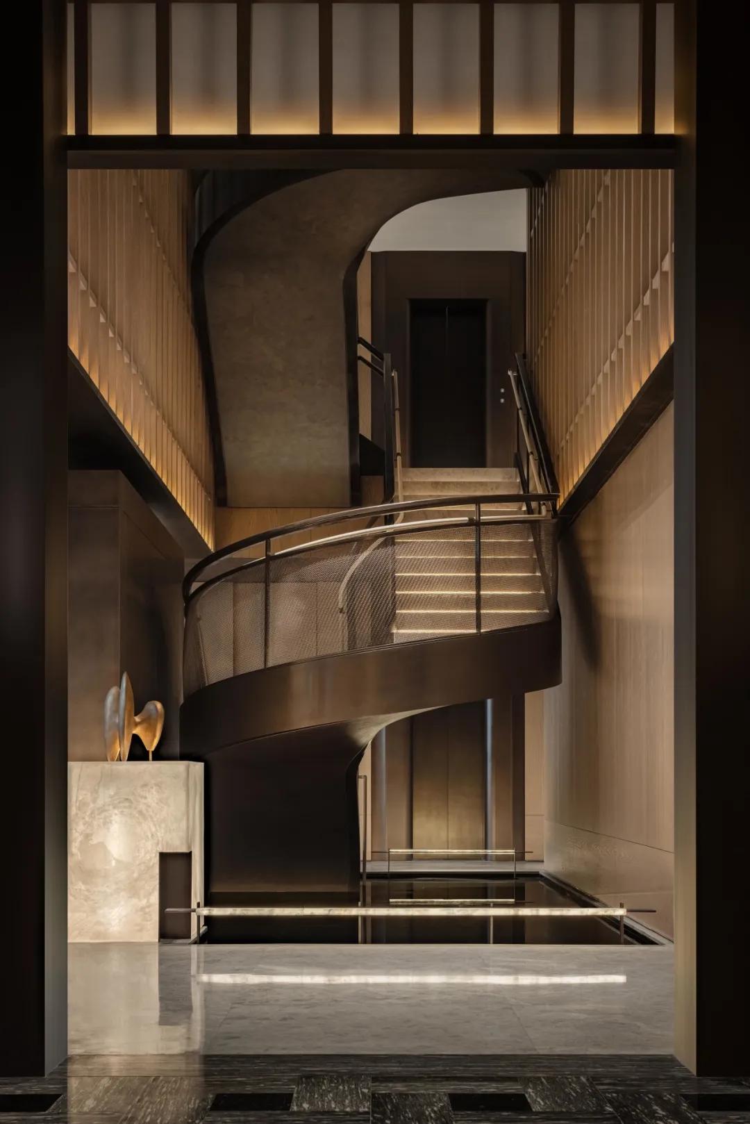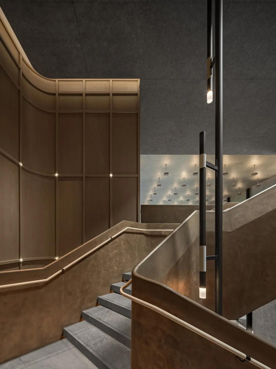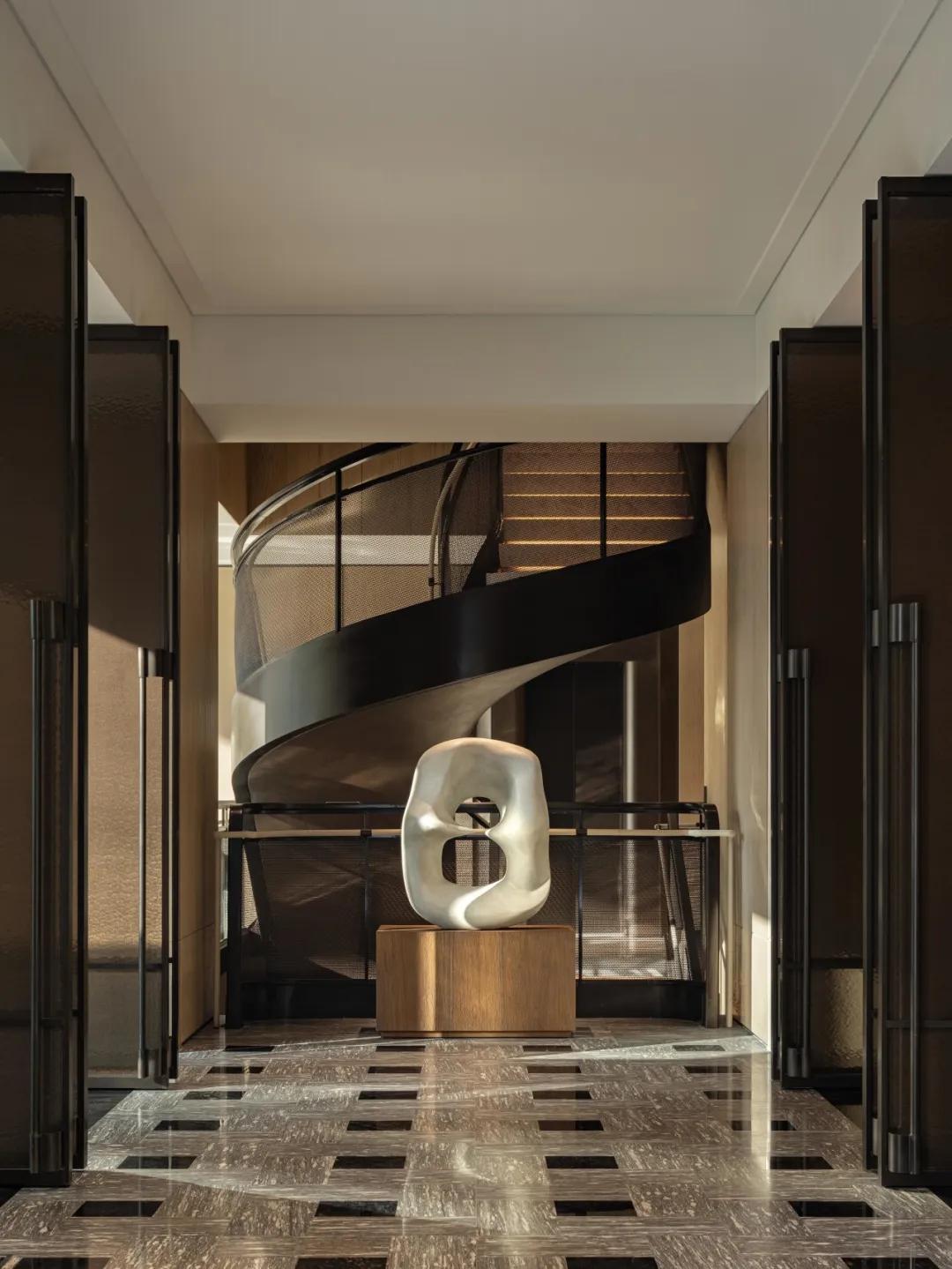 艺术楼梯打破传统空间的静态感,随着人的脚步移动,视线在空间中流动,使空间在垂直方向上得到延展与层叠的韵律。