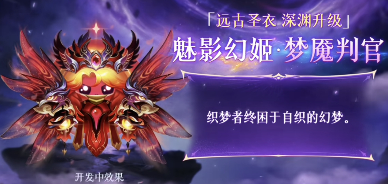 魅影幻姬·梦魇判官率先登场。昔日以幻术迷惑敌人的大师,如今沦为深渊的蛊惑之首。赤红羽翼在黑暗中舒展,双肩的不祥鸟低垂头颅,她编织罪恶让信念崩塌。但在堕落的深处,她仍渴望焚尽虚假,找回那个正义且真实的自己。