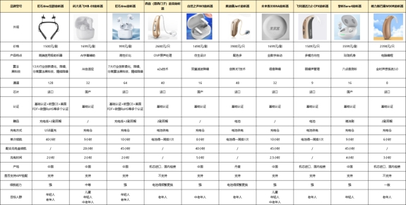 你知道吗,选购之前先把这些基本数据搞清楚,真的能省不少心。要是没有这些数字做支撑,怎么知道哪个最适合自己呢?所以,接下来这张图会给大家展示一些测评过的助听器性能,直接对比一眼就能看出来差别。数据展示的很清楚,挑选起来也不会再那么复杂了。