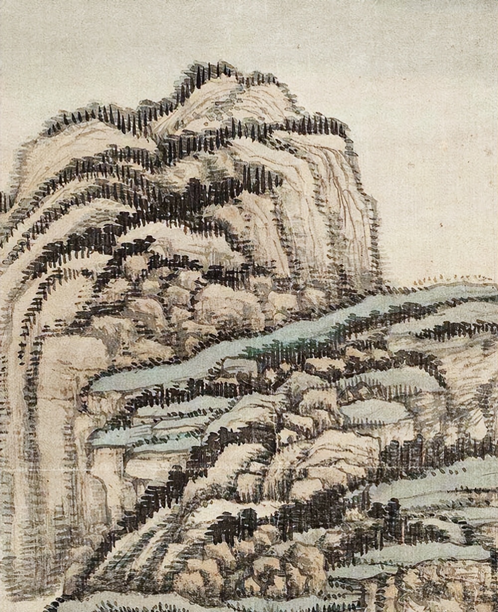 线皴相当于用线条“编织”山石结构。在这个过程中画家引入了“阴阳”的概念。所谓“阴”就是山石褶皱、缝隙处,因阳光无法照到画家用密集线条表现。所谓“阳”就是山石相对光滑的地方,因其具有明显光感画家往往用留白表现。在对比衬托下,画中山石有了立体感、空间感。就这样,凹凸变化的山石出现在眼前。