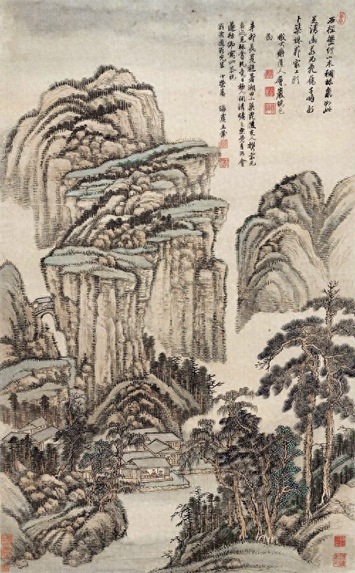 点皴和线皴并用,点皴应该起到画龙点睛的作用。王翚把点皴当成附属,当成点缀,让画面看上去很呆板。很多时候,笔墨带来的不仅是视觉震撼力,还有画家的情感。王翚用堆砌手法,连形貌真实立体都没表现出来。