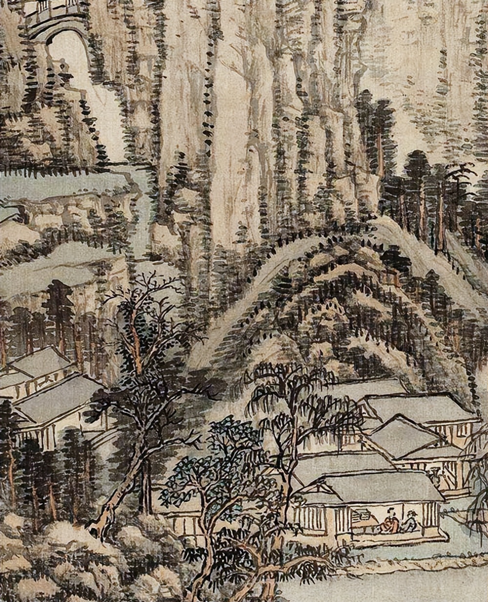 遗憾的是,山石结构过于复杂,这就导致他必须进行“雕琢”。王翚用相似度极高的墨点,强调山石表面的丰富肌理。点越多,反而让山石显得越平整。王翚不是在画山水,而是在搭积木。当一幅画只剩下堆砌技法,就无法显露画家的精神感受,当然没有魂魄了。