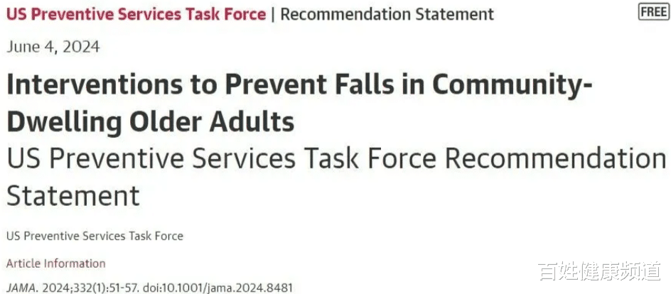 Grossman D C , Curry S J , Owens D K ,et al.Interventions to Prevent Falls in Community-Dwelling Older Adults: US Preventive Services Task Force Recommendation Statement[J].Jama the Journal of the American Medical Association, 2018, 319(16).DOI:10.1001/jama.2018.3097.