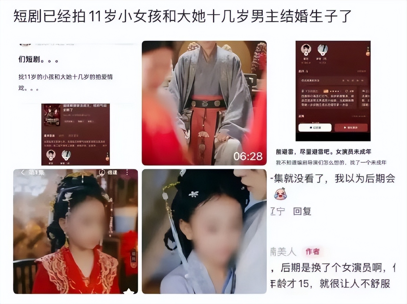 这起事件最刺痛人心的,是制作方对未成年人纯粹天真的无情消费。在剧中,稚嫩的面庞被迫演绎“养成系”、“圆房”等充满成人隐喻的剧情,男主则是成年男性,剧中甚至存在搂抱、牵手等肢体接触。这已远超创作范畴,是对童年的透支与消费,严重侵害儿童的身心健康与人格尊严。正如网友所言:“不能让小孩演暧昧剧情”。