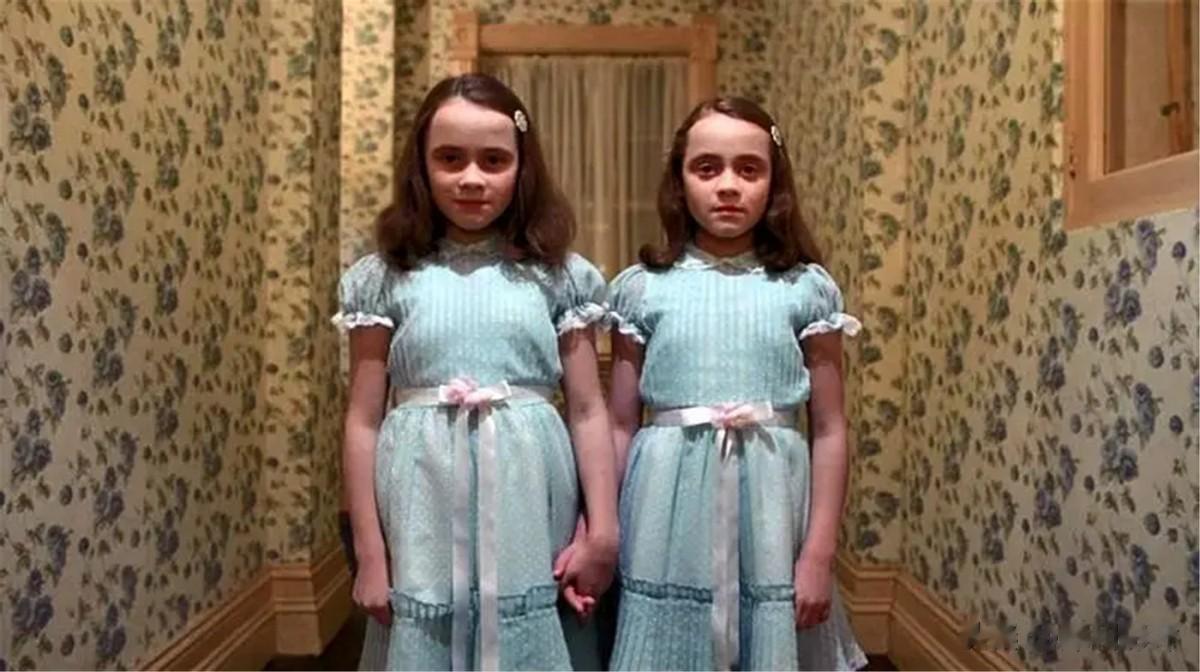 5、两个小女孩子:在斯蒂芬金的原著小说里,小女孩其实只有一个,《闪灵》将其改编成两个,库布里克煞费苦心找两个长相身高都差不多的小女孩,给她们一模一样的造型,暗指“双子星座”计划,该计划是阿波罗登月计划的前期过渡。
