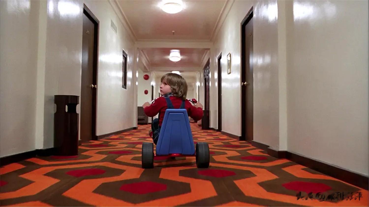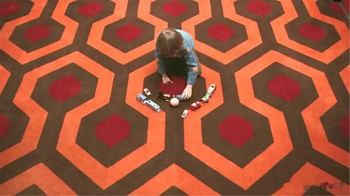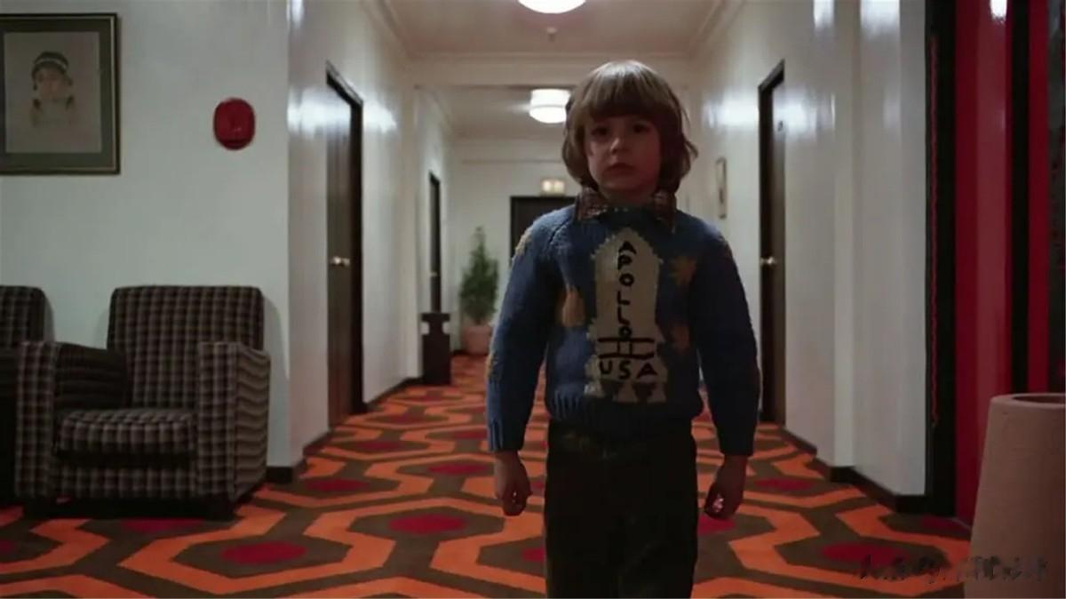 3、小男孩衣服图案:《闪灵》有一幕经典的戏,小男孩身穿画着阿波罗火箭图案的衣服,缓缓从地毯上站起来,走向插着“moon room237”钥匙牌的房间。