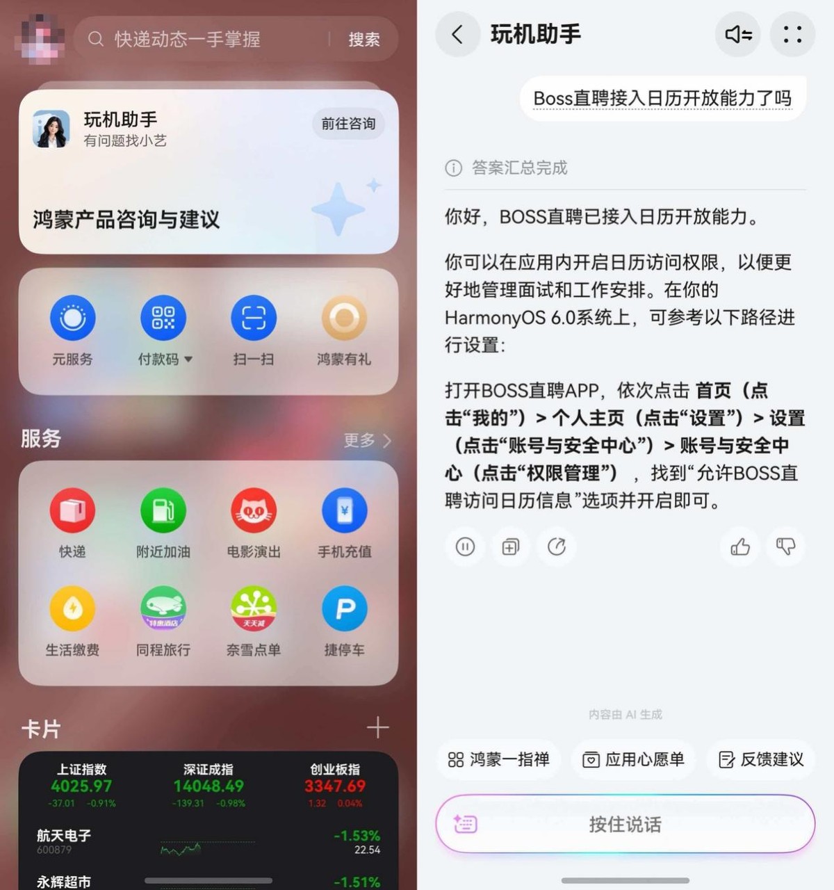 如果大家在使用过程中遇到任何问题,或是有想要提的建议,可以随时找小艺反馈,桌面右滑进入负一屏,找到“鸿蒙产品咨询与建议”入口,在对话界面直接向小艺提问,小艺会立马为你详细解答,一些常见问题也可以直接点击“鸿蒙一指禅”查看。