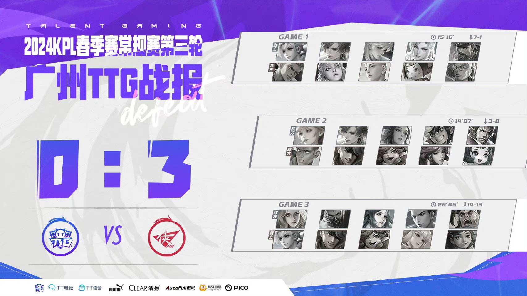 在KPL春季赛第三轮,广州TTG对阵济南RW侠的比赛中,TTG惨遭RW零封。