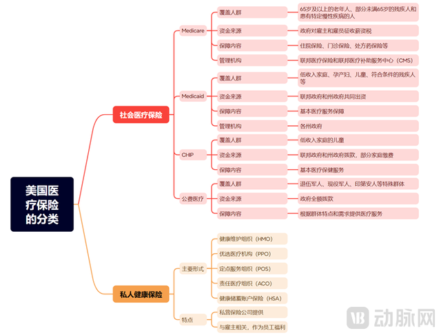 美国医疗保险分类:社会医疗保险和商业健康保险(图源:13个精算师)