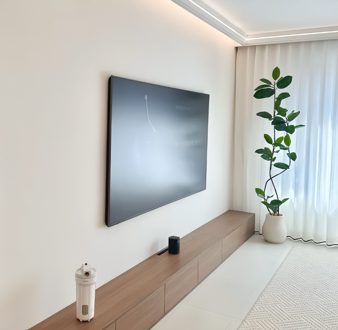 如果你担心单一的乳胶漆太单一,或者缺乏美观性,也可以让木工师傅用龙骨做一个造型,把电视机直接嵌入到中间,也不需要花费多少钱。