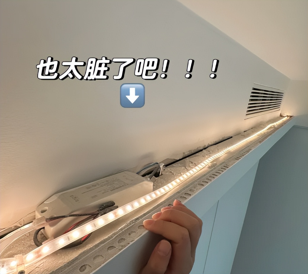 在网上跟风去做了二层吊顶,里面还嵌入了灯带全部吊顶花费了六千多,当时想着能提升美感也可以,没想到做完却后悔了,二层吊的设计,中间藏污纳垢十分严重!