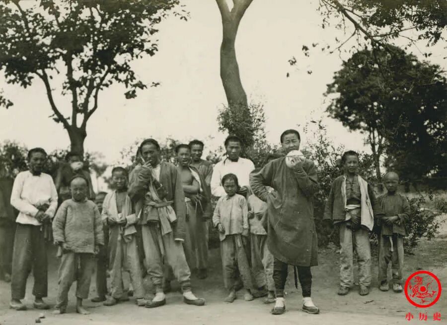 美国摄影师张柏林(Thomas Chrowder Chamberlin)扛着照相机来到卫辉一个村庄,农民们好奇地围观这个陌生人和他手里的陌生机器,而Chamberlin顺势定格了他们的表情和姿态。照片中一些人在吃饭,有人吃完后又在舔碗。旧社会农民生活艰难穷困,每一粒粮食都来之不易,舔碗也是不浪费粮食的举动。