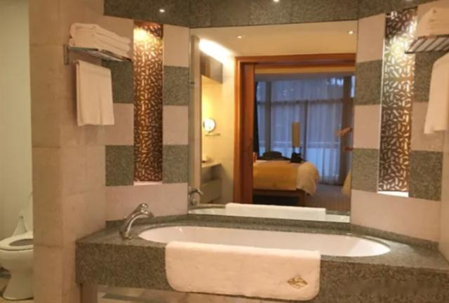 下图是一楼普通套间的内景照,主打的也是个暖色系,整体布置,其实和普通的大酒店差不多,更多的是体现一种舒适感。