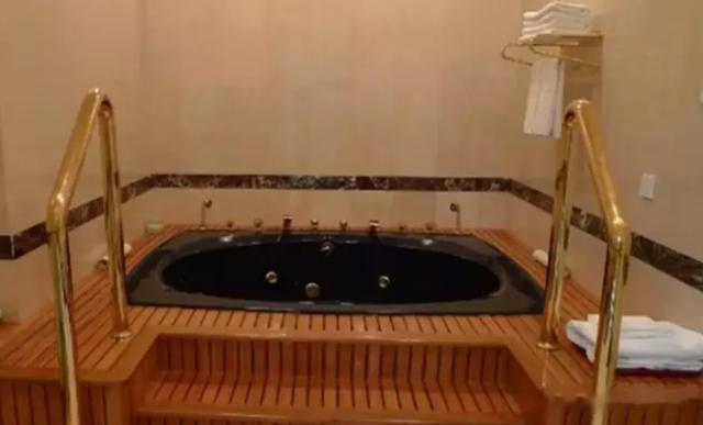 卧室里还有按摩浴缸,内部贴心的设计很多出水孔,以控制水压达到按摩,缓解疲劳的效果。整个浴室里铺设的事浅黄色的大理石,突出的就是一个暖色系,主打的就是一个温馨。