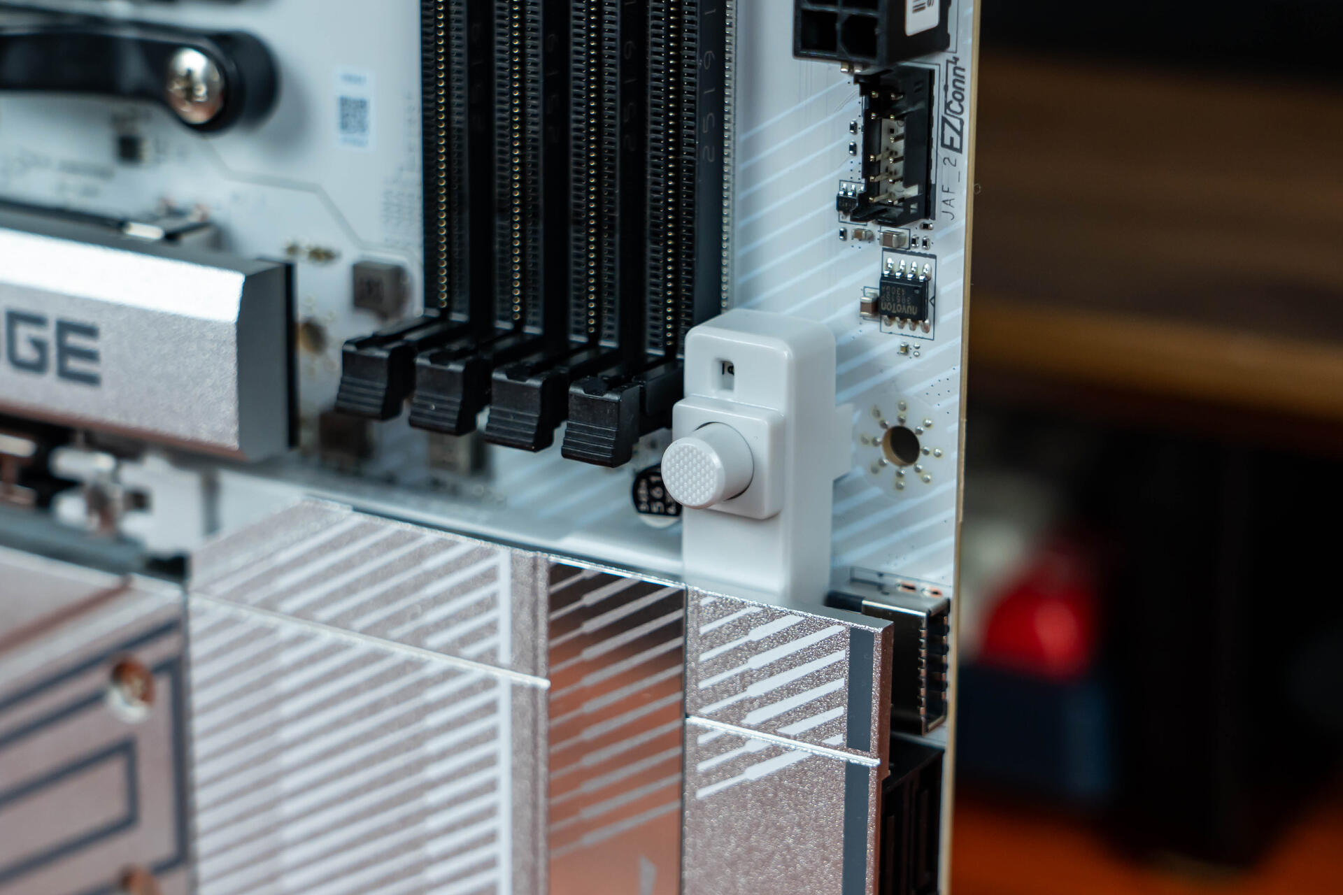 ▼ 主显卡插槽使用了备受好评的EZ PCIe快拆装置,可一键锁止/解锁PCle插槽卡扣