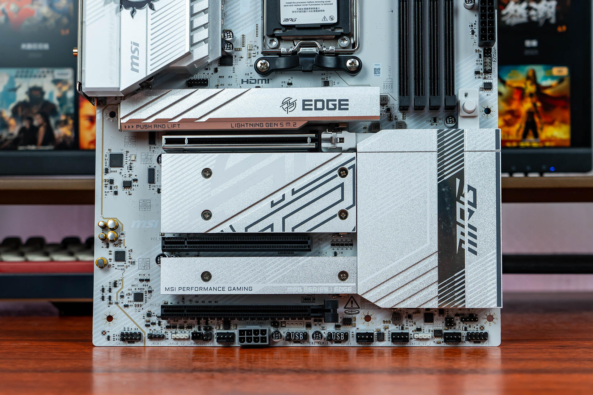 它以一千多的价格提供了诸多中高端配置,例如:14+2+1相供电设计、高性能散热装甲、双PCIe 5.0 M.2插槽、满血版WiFi 7/5G网口以及一系列为简化装机流程而加入的快拆设计等。除此之外,这款主板更是一件融合了设计美学的佳作,覆盖全板的银色装甲颜值高、质感足,追求个性化装机主题的用户一定不能错过。