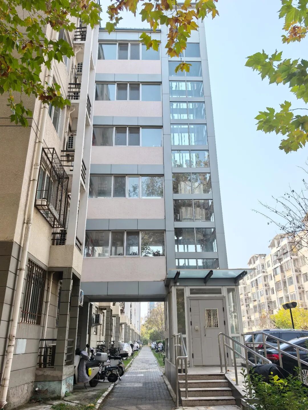 加装的电梯不再是那种丑不拉几的电梯井,装完之后,反而给老楼添了亮点,整个小区的颜值都提升了。