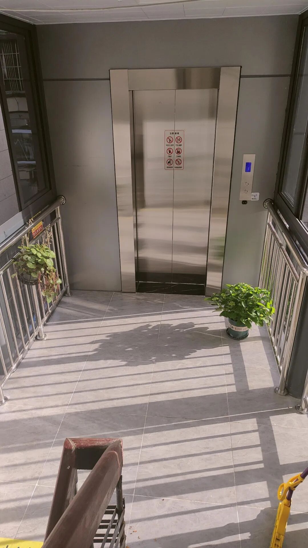 平层入户能彻底告别“爬半层”的尴尬!之前那些鸡肋方案,装完还得爬半层,等于白忙活。但这个方案,电梯出入口直接连接每家的新阳台,电梯门一开,一步就能踏进自己家,真正做到“一步到家”!