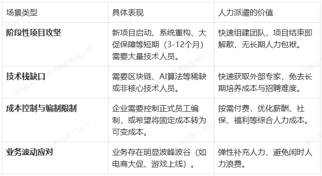 企业引入人力派遣,通常基于以下核心场景:
