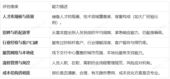 在决策时,企业应回归基本面:明确自身核心诉求是“补缺口”、“降成本”还是“提速度”? 在此基础上,严格评估服务商的人才储备、匹配能力、管理流程和行业口碑,通过试点项目验证合作效果。
