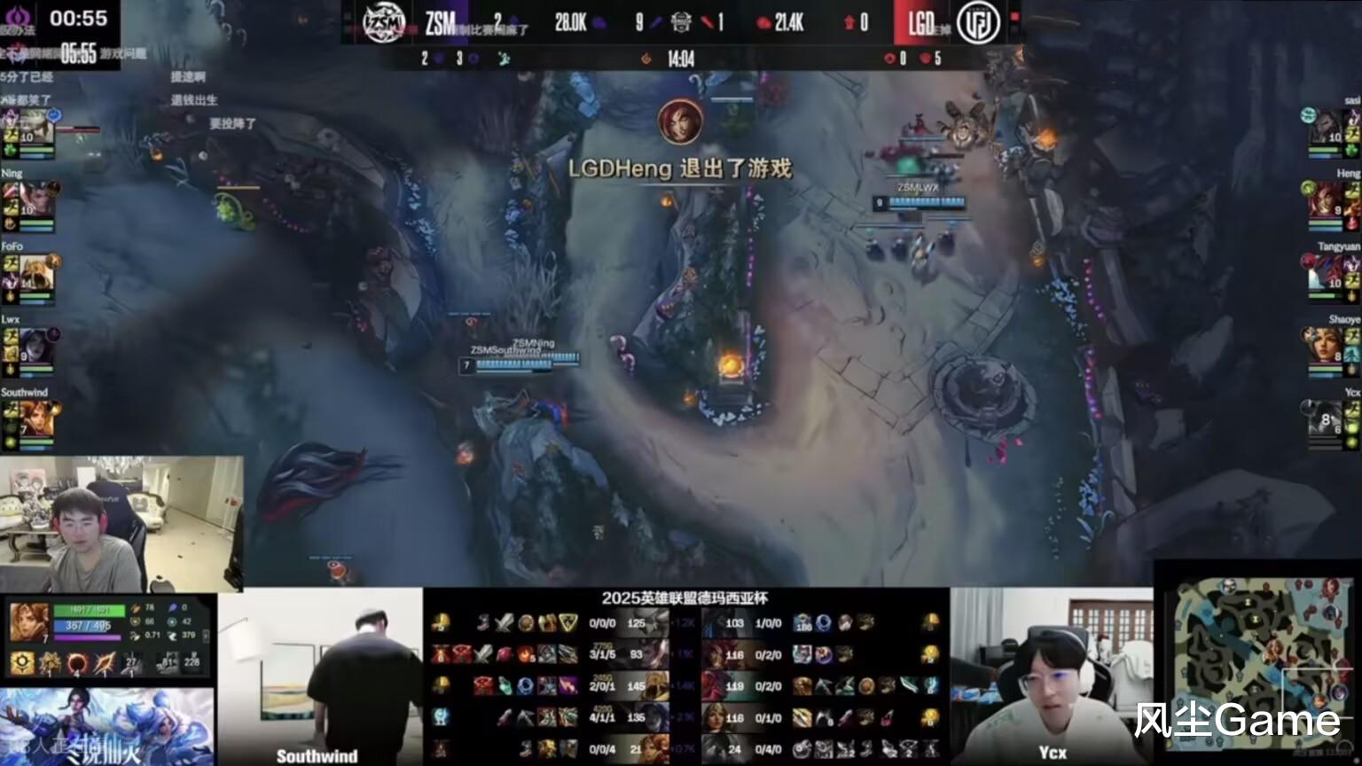 如果是基地网络有问题的话,选手的摄像头,肯定是会卡住的,但UP和LGD掉线的时候,摄像头都在正常工作,选手画面没有卡顿,所以这就是客户端BUG,德杯虽然不是LPL官方赛事,但再怎么说,也是比较正规的比赛了,开赛第一天,就有两支队伍,受到BUG影响,真的很难绷啊。