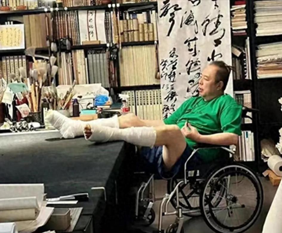 他两条腿缠着厚厚的绷带,整个人瘫在轮椅上,走不了路,吃喝拉撒全靠护工搀扶、推着。